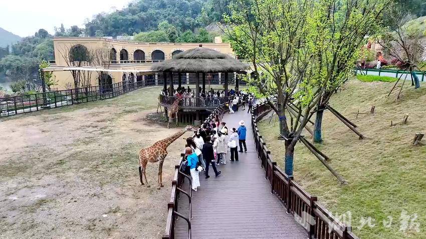 三峡长颈鹿乐园共设有萌宠乐园、山地滑车、探洞工场等十大主题项目,通过“旅游+娱乐”“游客+动物”的创新模式,打造出别具一格的情景式度假体验,持续吸引着省内外游客前来打卡。清明假期,园区住宿满房,餐饮也全线爆满。
