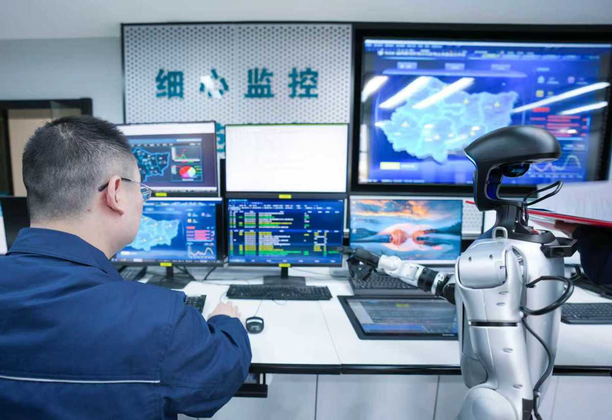 2月10日,国网襄阳供电公司江南集控站监控大厅,人形机器人正在工位上作业。