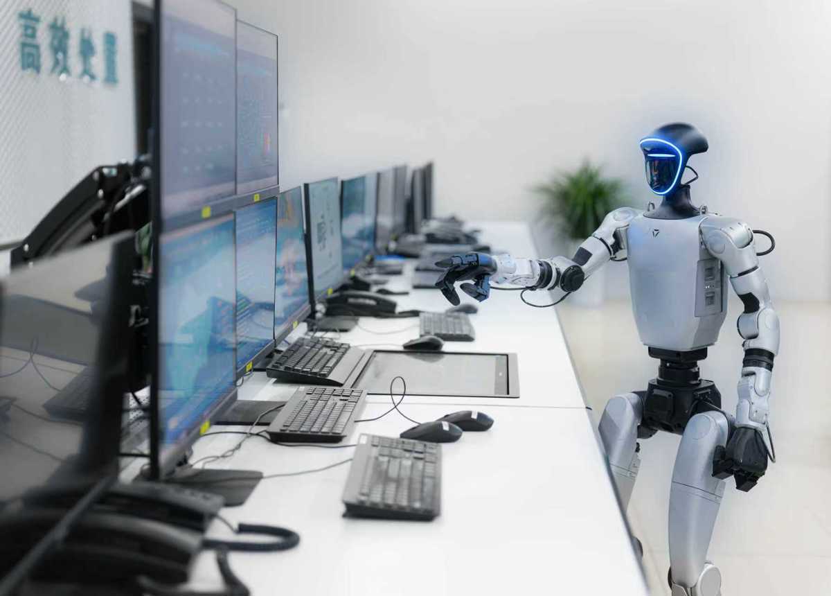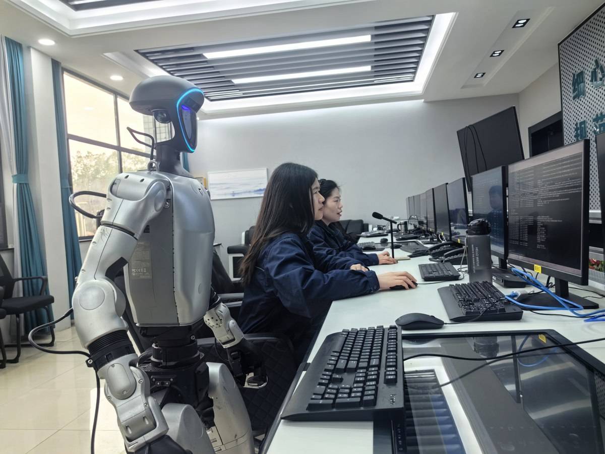 2月10日,国网襄阳供电公司江南集控站监控大厅,人形机器人正在工位上作业。记者祝兆林摄