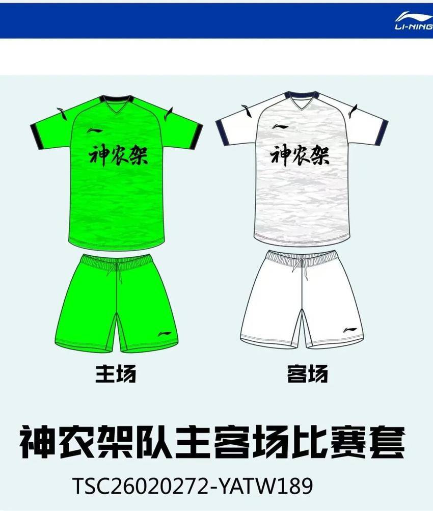 此次发布的主客场战衣,设计灵感均取自神农架的自然风貌,实现了生态之美与体育精神的巧妙融合。主场战衣采用“森林绿”为主色调,鲜明的色彩源自神农架原始林海的鲜活本色,象征着华中绿肺的蓬勃生机;球衣胸前印有醒目的“神农架”字样,搭配同色系短裤,整体造型简洁有力,寓意球员们如山林般坚韧,在绿茵场上掀起充满活力的“绿色风暴”。