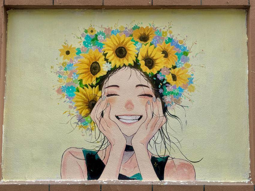 中间是头戴向日葵、笑靥如花的治愈系少女,明媚的笑容仿佛能驱散所有疲惫,传递着向阳而生的温暖力量;