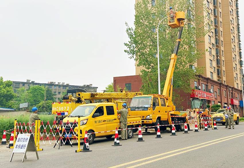 湖北日报客户端讯(通讯员 朱俊波、李天一)4月8日,荆门市城区路灯管理局组织人力物力对月亮湖北路、果园三路、果园四路等路段路灯设施进行检修维护,更换老旧灯具4套,并对低洼地段线路和箱变设施进行防潮防水检查,减少故障隐患发生,确保亮化畅通。