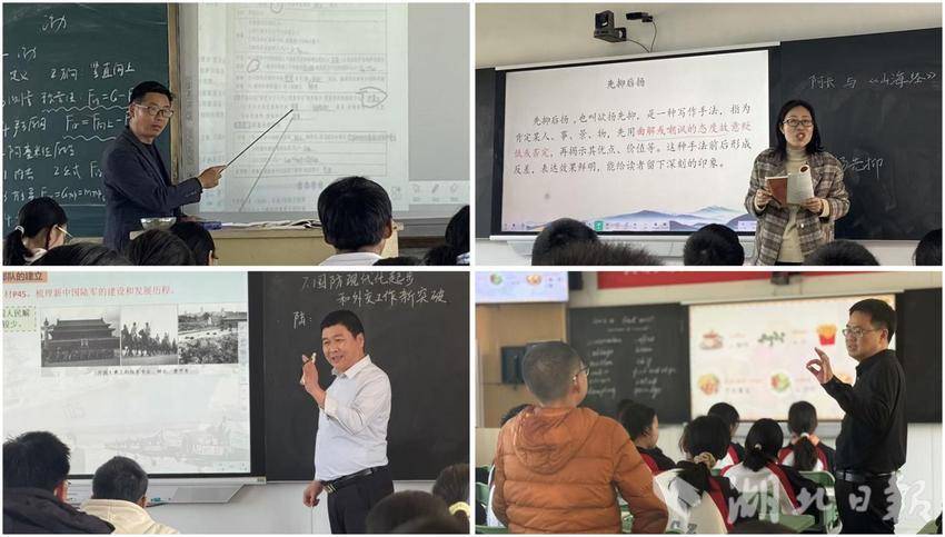 活动中,四位校长紧扣学科特点,呈现了精彩纷呈的展示课:贺集中学校长尹作春执教九年级物理复习课《第十章 浮力》,立足中考梳理知识网络、强化思维训练;该校副书记曾丽萍执教七年级语文课《阿长与〈山海经〉》,以细腻解读引导学生品味经典;石牌初中校长杨代春执教八年级历史课《国防现代化起步和外交工作新突破》,结合现实厚植家国情怀;该校副校长李军强执教九年级英语听说课,以分层任务激发学生表达欲望,课堂高效活跃。