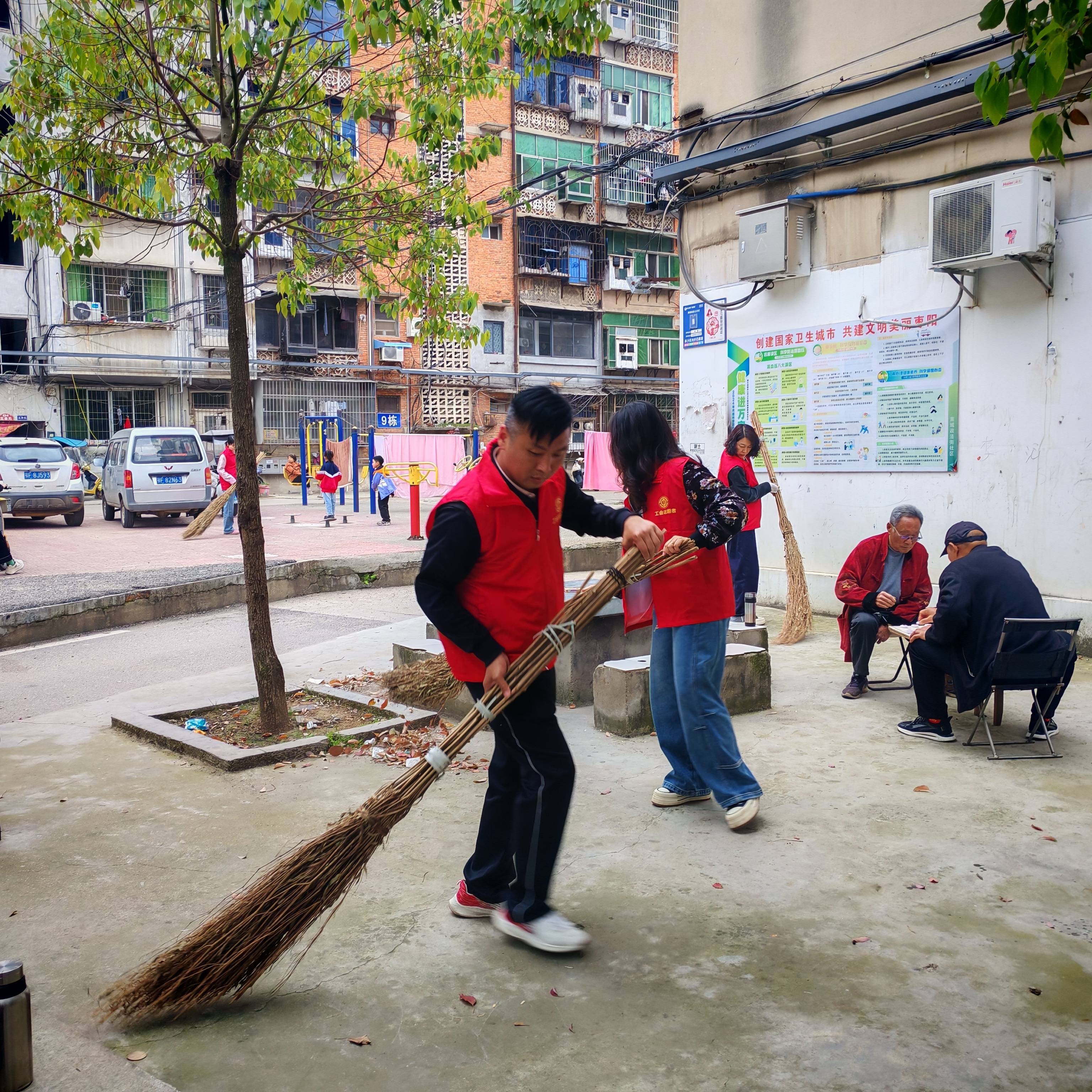 活动现场,工会干部职工及社区工作者们分工协作,聚焦小区环境卫生薄弱环节,开展全面大扫除,重点清理卫生死角、整治乱堆乱放。同时,志愿者还现场向居民普及垃圾分类知识,引导大家主动参与环境整治。
