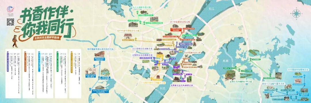 同步发布的“书香作伴·你我同行”全民阅读主题研学路线,以“阅读+实地+体验”为核心,面向全年龄段尤其是青少年,设计了五大主题共12条具体线路。每条路线都明确了主题方向、串联点位、互动体验,并配套推荐书目。