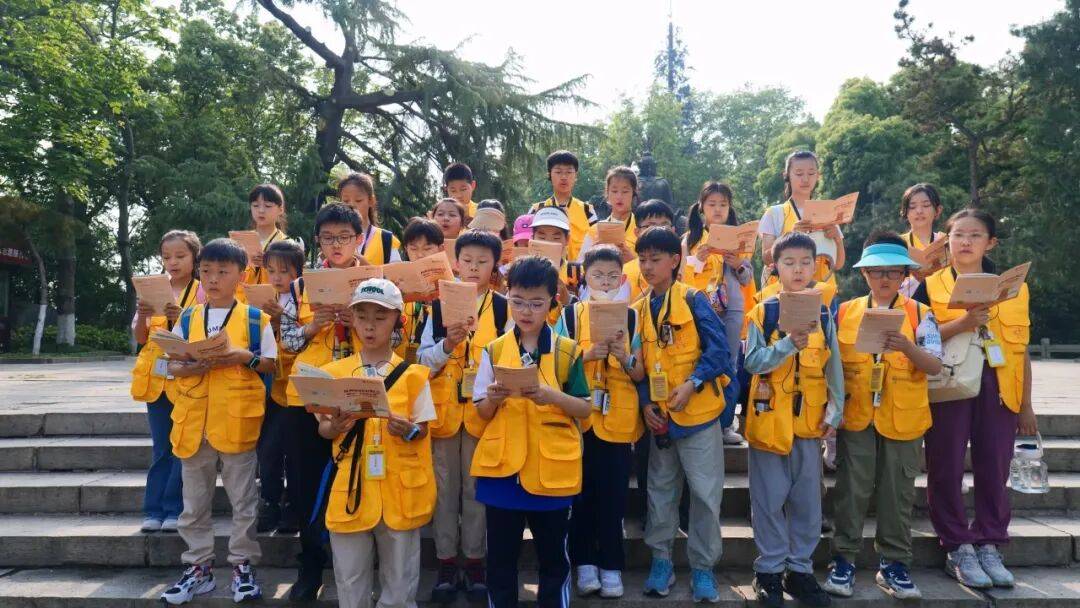 楚才报小记者在黄鹤楼读诗词。