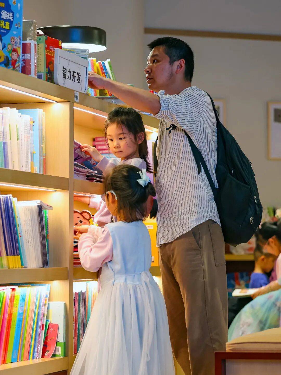 在武汉中心书城翻阅书籍的亲子家庭。 长江日报城市摄影队贠有名 摄