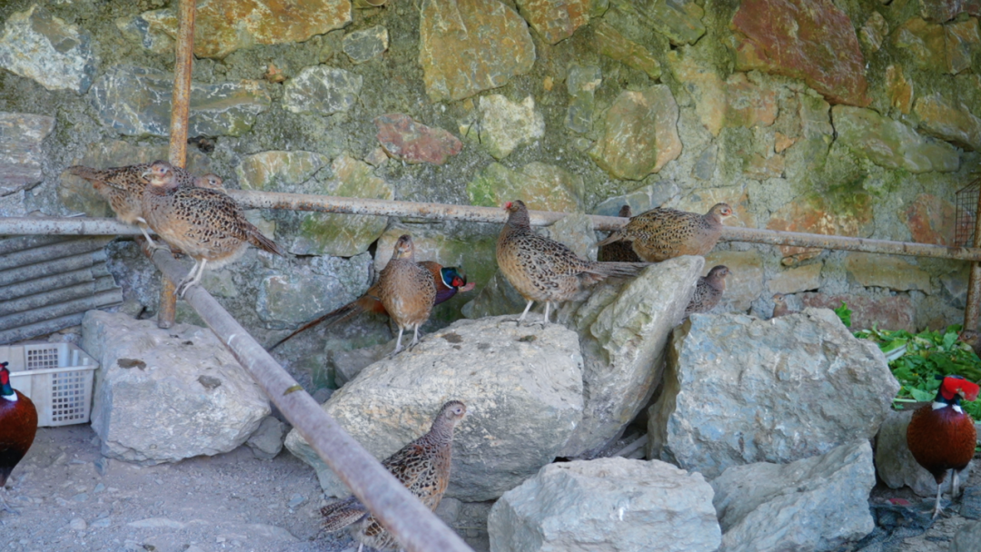 4月9日上午,我们走进陈兴龙家下方的七彩山鸡养殖场,一眼就被眼前的景象吸引:一群群毛色艳丽、体格健壮的七彩山鸡,或引吭高歌,或相互追逐,活力满满。只要陈兴龙一声吆喝,它们就会成群结队从四面八方飞奔而来,争抢着啄食,场面十分热闹。