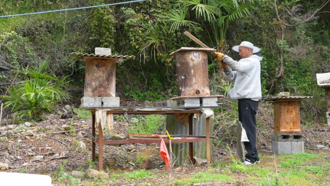 值得一提的是,陈兴龙的致富路,不止有七彩山鸡。在养殖场一侧,他还养殖了200多只鸽子;房前屋后,还有80多桶蜜蜂。多元养殖相辅相成,让陈兴龙一家的年收入直接超过了80万元。