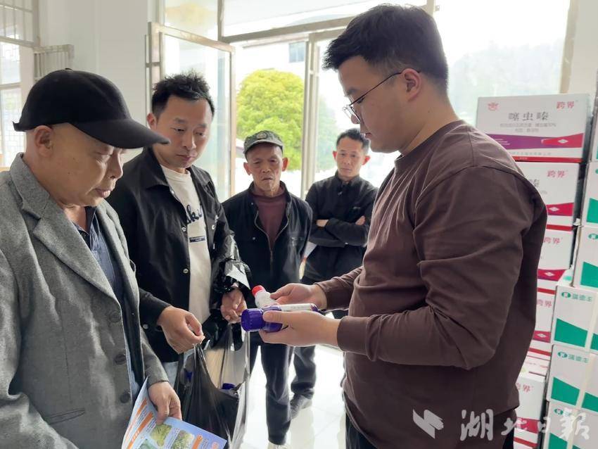 湖北日报客户端讯(通讯员 姚蕾 杨兴梅)“张伯,一亩地用一瓶药,下一次7月份再打。”4月10日,宣恩县李家河镇组织开展柑橘木虱防控药品集中发放暨田间技术宣传活动,将物资和技术送到果农手中。