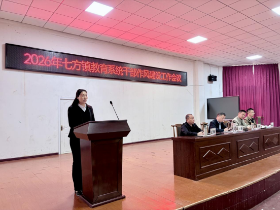 湖北日报客户端讯(通讯员袁安政、尤兴照)4月10日上午,2026年枣阳市七方镇教育系统干部作风建设工作会议在七方镇中学功能报告厅召开。镇教育党总支副书记李涛主持会议,会议总结了2025年全镇教育系统作风建设工作,分析了当前形势,部署了2026年重点任务。
