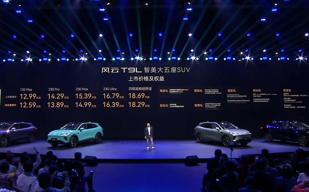 4月13日,奇瑞风云品牌旗下全新车型——风云T9L在重庆正式全球上市。新车定位“智美大五座SUV”,共推出5款配置,官方指导价12.99万元至18.69万元,叠加置换补贴后入门车型低至12.59万元。作为风云品牌2026年首款战略车型,风云T9L围绕空间、设计、性能、智能、安全五大核心价值,以越级实力切入竞争激烈的15万级家用混动SUV赛道。市场反响热烈,据官方数据,新车上市3小时订单即突破15658台。