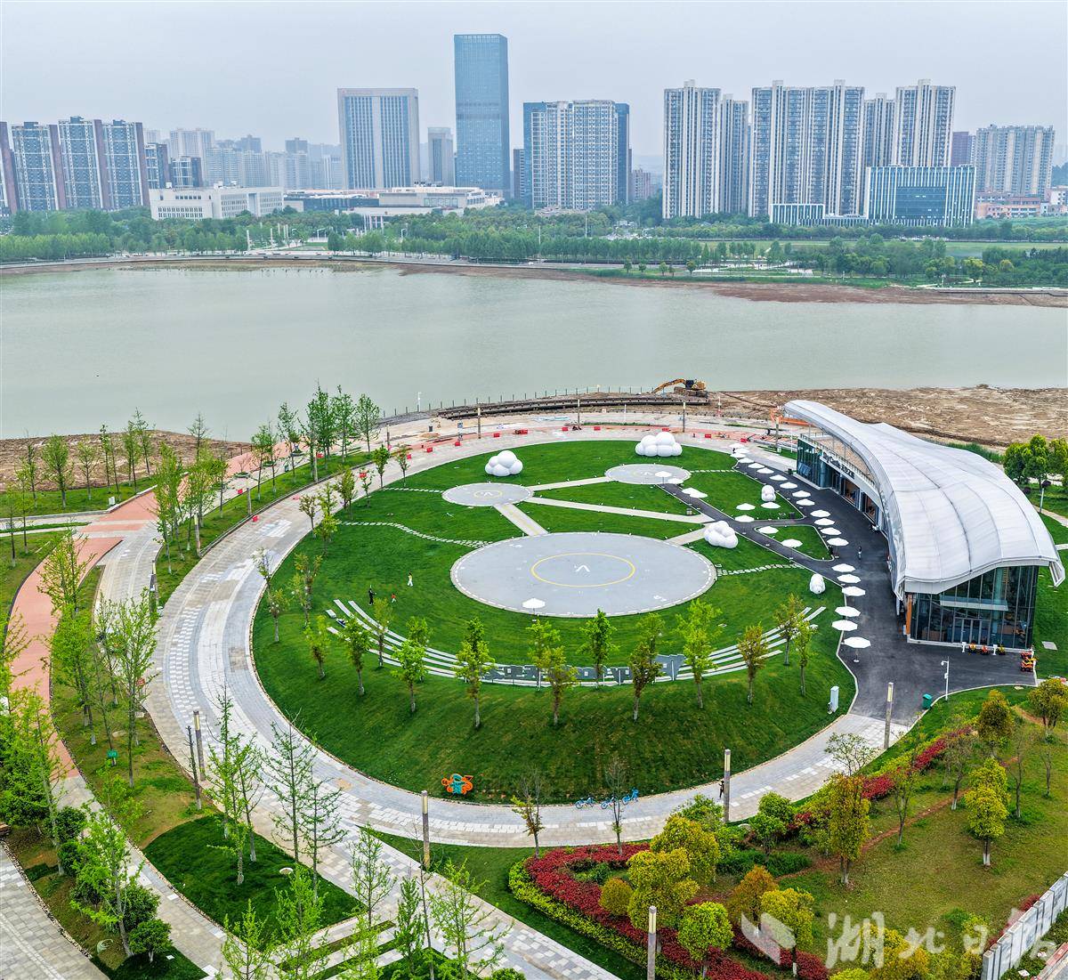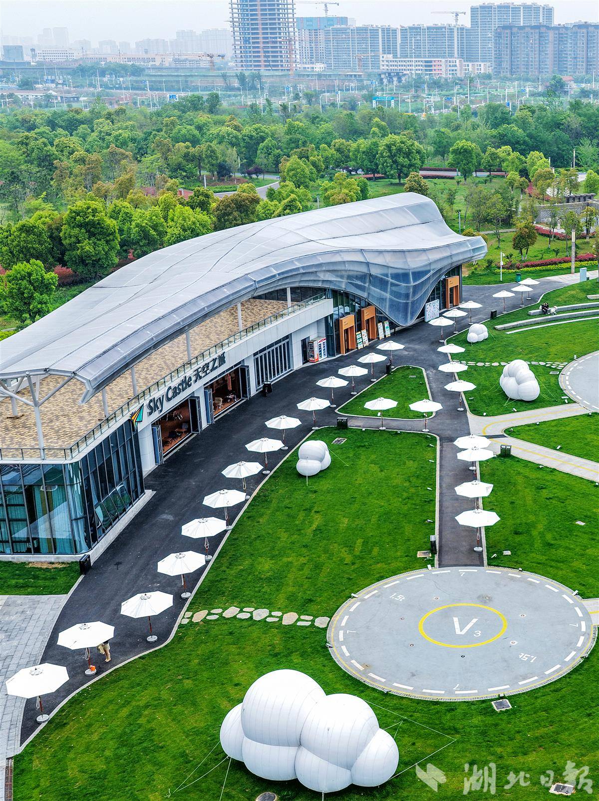 4月13日,鸟瞰近日开放的武汉江夏中央大公园“天空之城”项目,项目由武汉市江夏文化旅游发展集团有限公司承建,是一处兼具观赏性与功能性的文旅新地标。