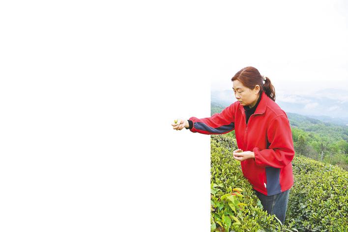 49岁的彭宏霞站在茶垅间,组织工人趁着春光正好,抓紧采收。2008年,她回乡承包300亩茶山。18年来,她坚持有机种植,每年有20吨茶叶远销欧洲。