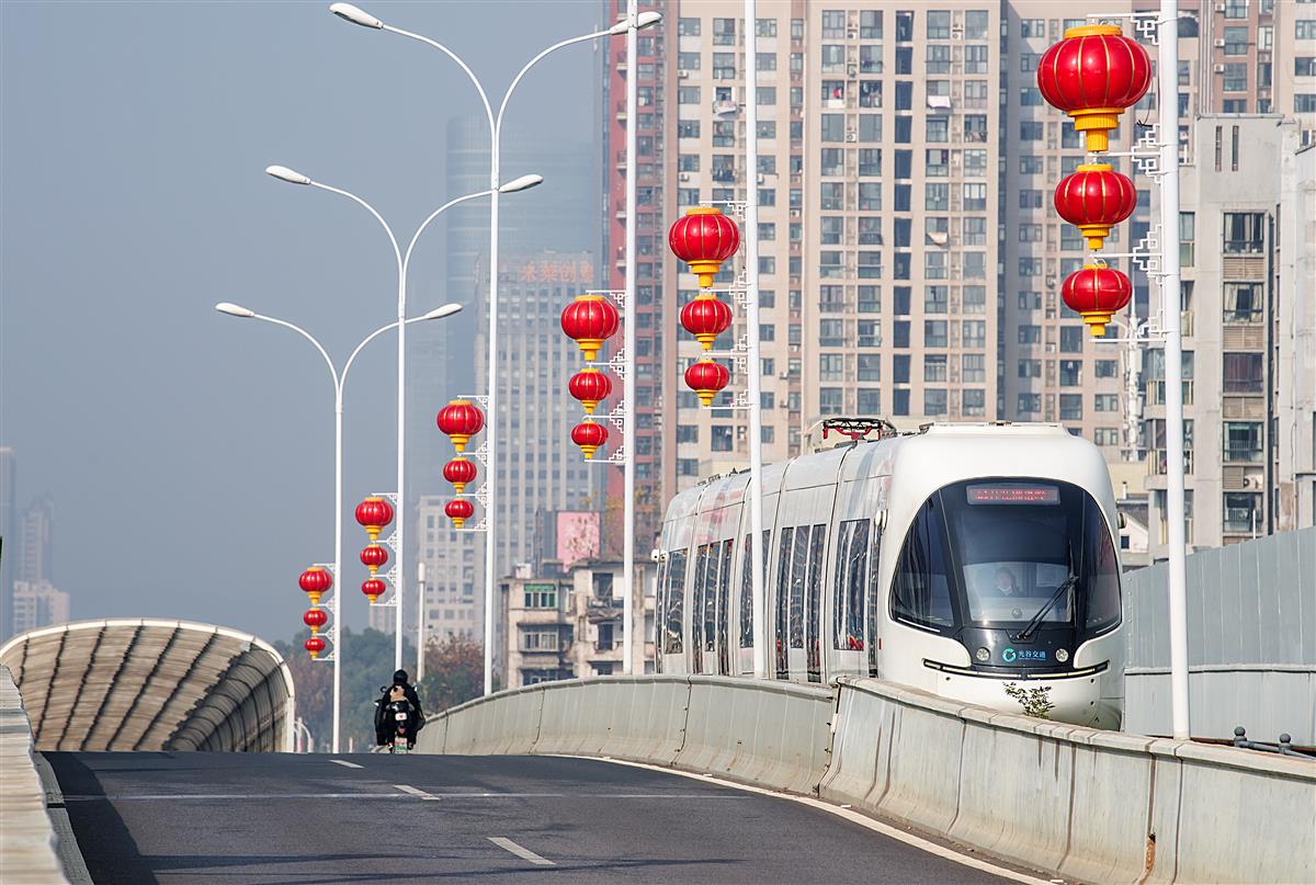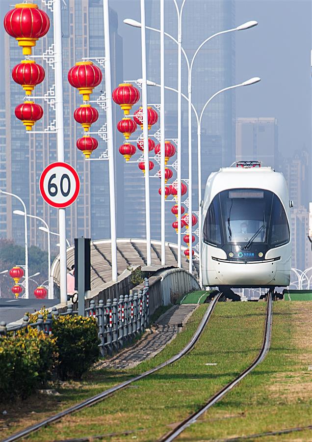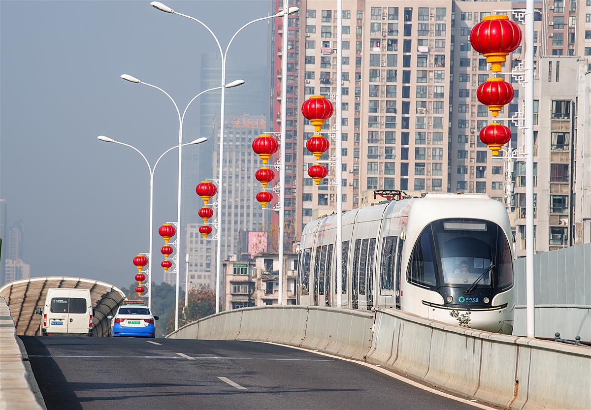 1月6日,在武汉关山大道两则开始有序地悬挂灯笼,,街道上节日气氛渐浓。近日,随着春节临近,江城大地年味渐浓。(湖北日报全媒记者朱熙勇摄)