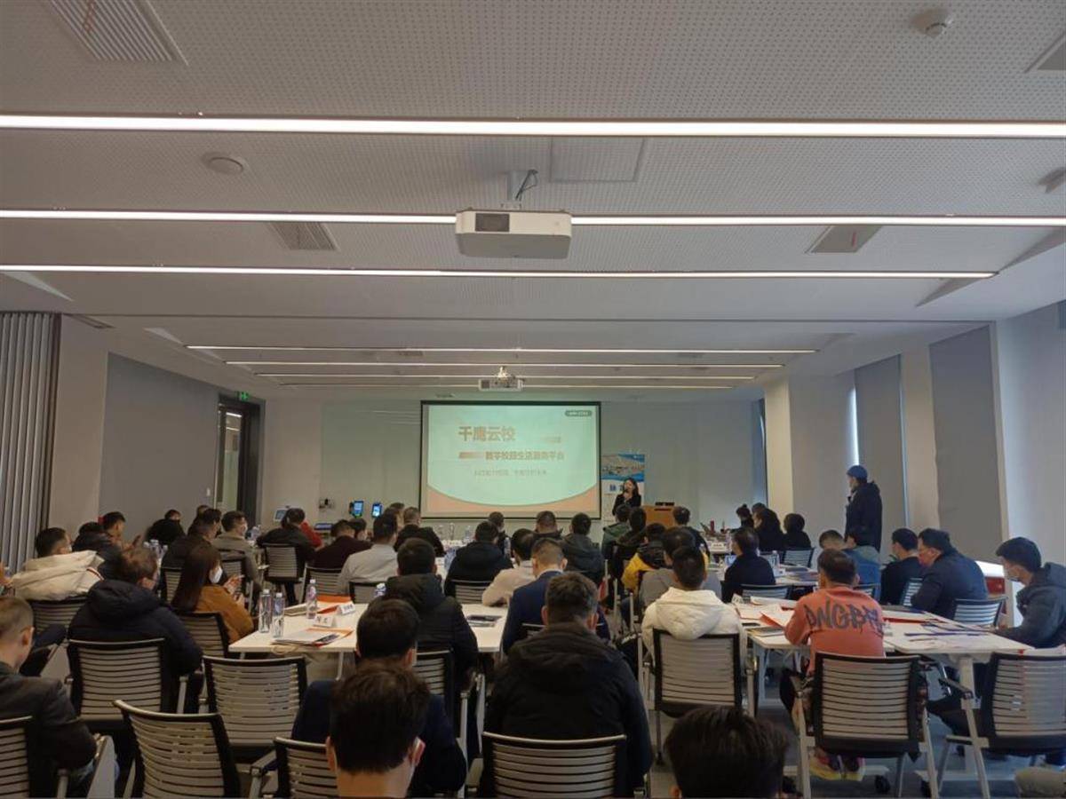 千鹰云校市场负责人艾云峰女士向到场嘉宾详细的介绍了千鹰云校数字校园生活服务平台基于支付宝生态能力开发的相关产品及功能,千鹰云校作为国内领先的数字校园生活服务平台,依托IOT、AI、大数据等技术能力,构建校园食、安、支、住、家、管等一站式服务平台,助力校园场景实现数字化,守护学生未来。