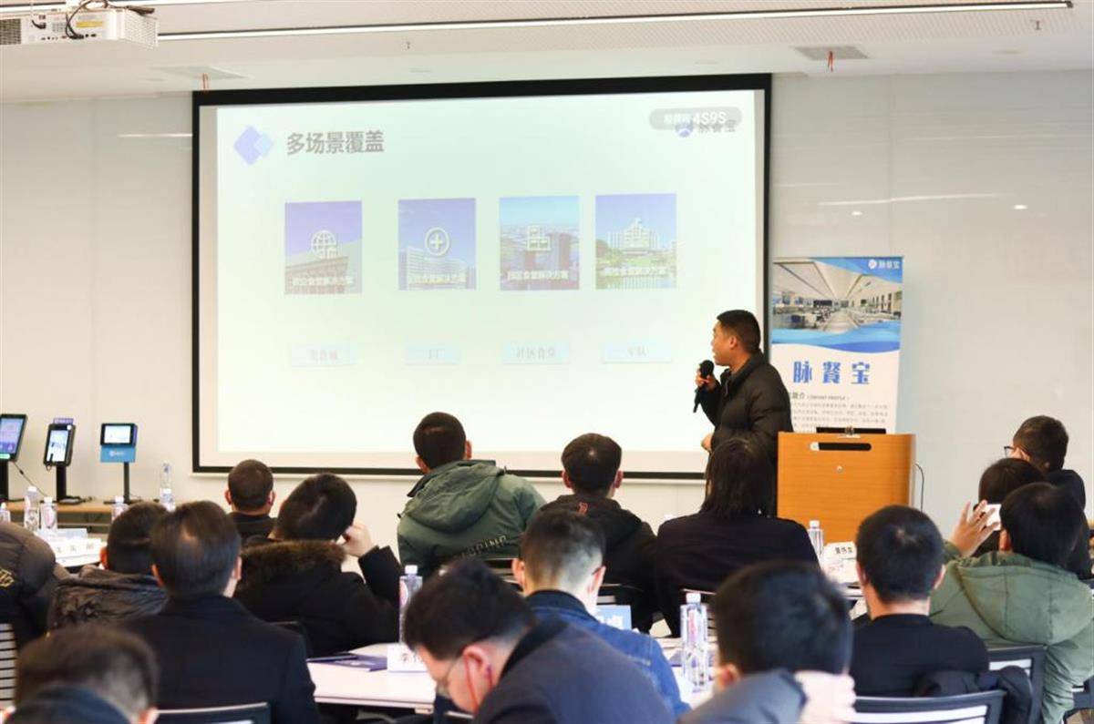 脉餐宝产品总监韩传兵先生向到场嘉宾详细介绍了脉餐宝智慧团餐解决方案。他通过对团餐行业市场现状及前景分析,对脉餐宝解决方案及相关产品的介绍,使到场嘉宾对团餐行业的市场机会有了新的认知,对脉餐宝也有了全面的了解,脉餐宝作为政企及高校团餐服务品牌,通过集成一系列智能化、自动化应用设备,通过优化食堂支付、点餐、结算、管理等流程,提升团餐服务及管理效率,助力团餐企业实现数字化转型。