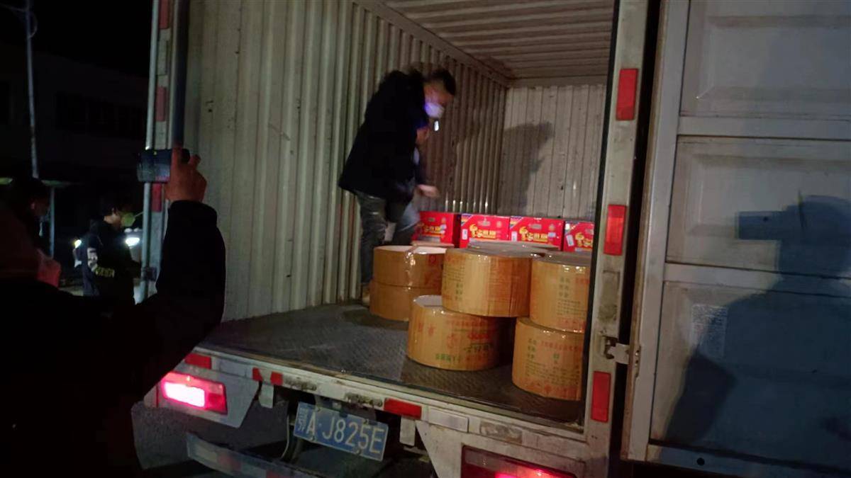 当晚,罗田县应急管理局、公安局、市场监管局共16人分两组在胜利镇、三里畈镇设置2个安全检查点,对过往货运车辆开展安全检查,先后发现两辆货车形迹可疑,遂对车辆进行仔细检查,发现车内装有大量烟花爆竹,驾驶员瞿某超、熊某明无法提供《烟花爆竹道路运输许可证》,车辆未悬挂易燃易爆危险物品警示标志,2名违法人员随即被公安民警带走作进一步调查。