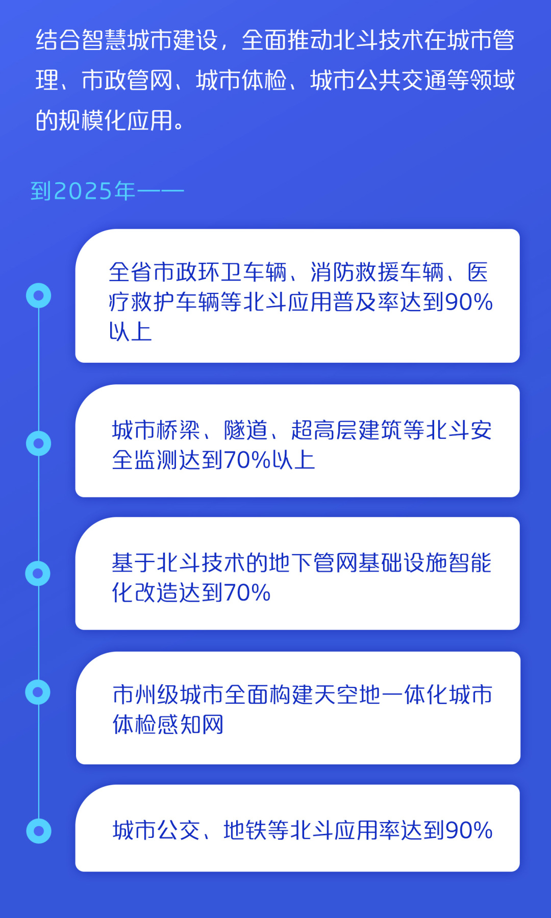 《方案》提出,实现北斗产业规模“一年强基、两年加速、三年突破”,力争2023年达到650亿元、2024年达到800亿元、2025年达到1000亿元,“十四五”末产业规模占全国比重达10%以上。