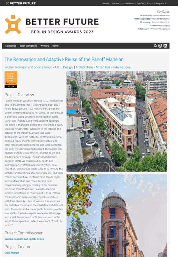 2月14日获悉,由中信建筑设计研究总院有限公司(以下简称中信设计)修缮设计的武汉巴公房子保护修缮和再利用项目获得2023柏林设计奖·建筑类银奖。这也是本届柏林设计奖中唯一由在鄂设计单位主持设计的建筑类获奖项目。