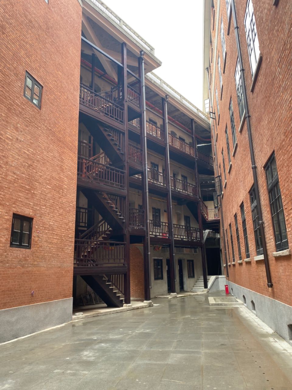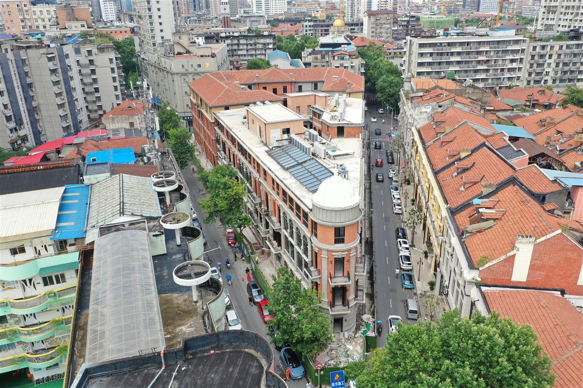 三扇门的可用构件拼成一扇,木楼梯做防火碳化处理,墙面洗、铲、磨再注浆加固……本着历史建筑修旧如旧、可持续性理念,施工过程中,团队大量采用原材料、原工艺修缮建筑,使用可回收、可重复使用和可再生的建筑材料。历时近五年,兼顾武汉本地特色和天井空间,能同时满足主题展览、公共休闲和酒店功能的百年建筑焕新亮相。