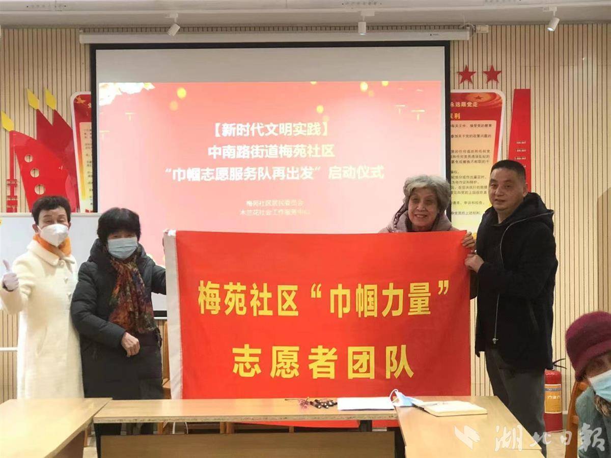 湖北日报讯(记者李光正、通讯员李苑茜)“在志愿者队伍中引入协商议事工作法,是社区治理工作的一大进步。我们巾帼志愿服务队一定会再接再厉,更好履行工作职责,服务好广大居民群众!”2月22日,武汉市武昌区中南路街道梅苑社区携手木兰花社会工作服务中心,举行“巾帼志愿服务队再出发”启动仪式,巾帼志愿服务队新任队长黄阿姨说。