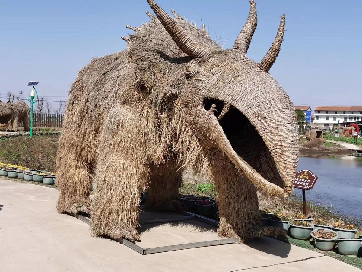 “这个稻草人展示活动,有17项免费参观项目,除了院内这些动物王国主题的巨型的稻草人,后面还将会有150组卡通稻草人展示,沿途38米紫藤花长廊,40米油纸伞长廊还可以拍照打卡,小动物饲养员区、无动力乐园区以及特色美食区都会配备到位。”项目负责人张先生边走边介绍道。