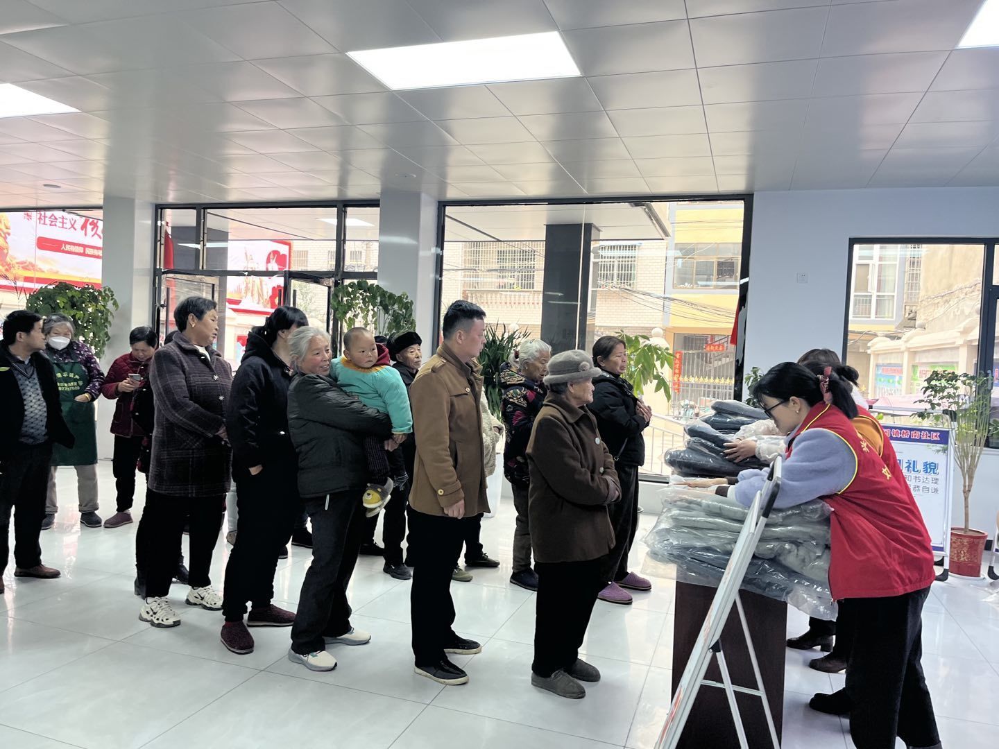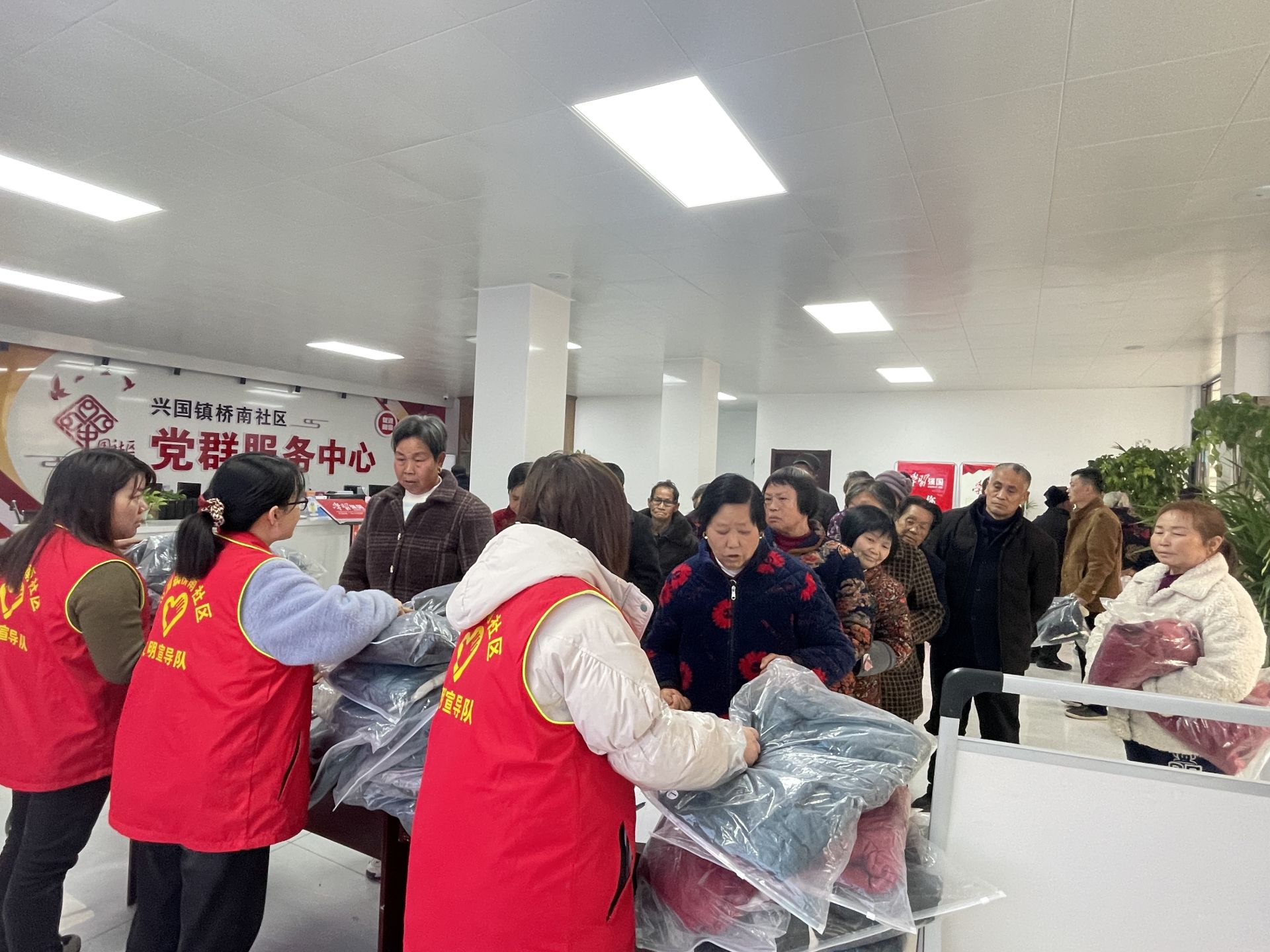 当日,阳新县桥南社区新时代文明实践站为辖区困难家庭发放爱心新衣110件。
