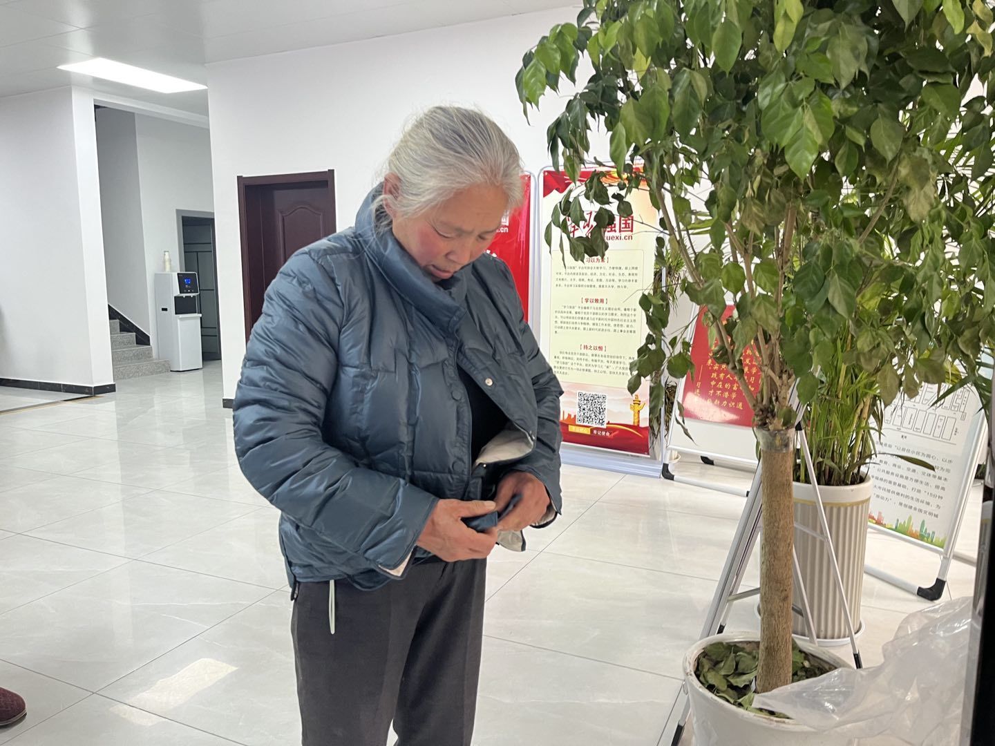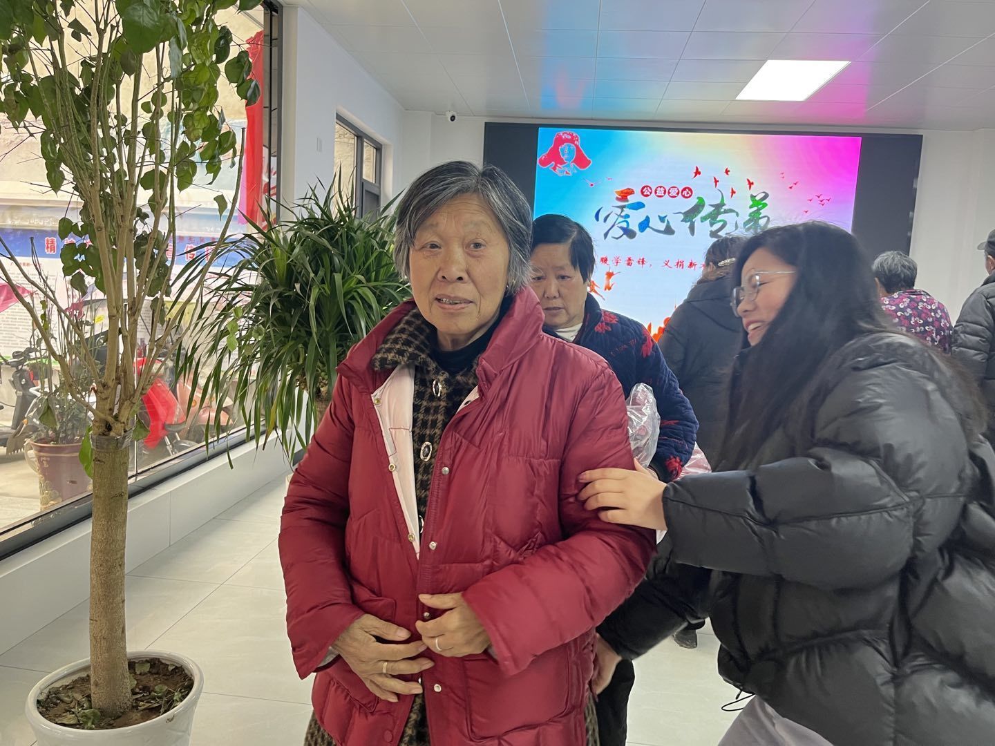 “这件衣服真暖和,非常合身,谢谢王老板和社区时刻关怀着我们!”受助居民在社区工作人员的帮助下试穿刚领到的新衣裳,脸上洋溢着灿烂的笑容。