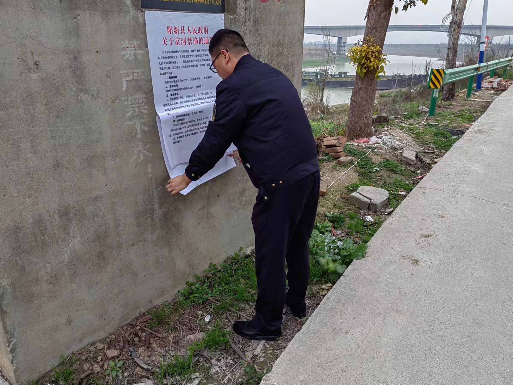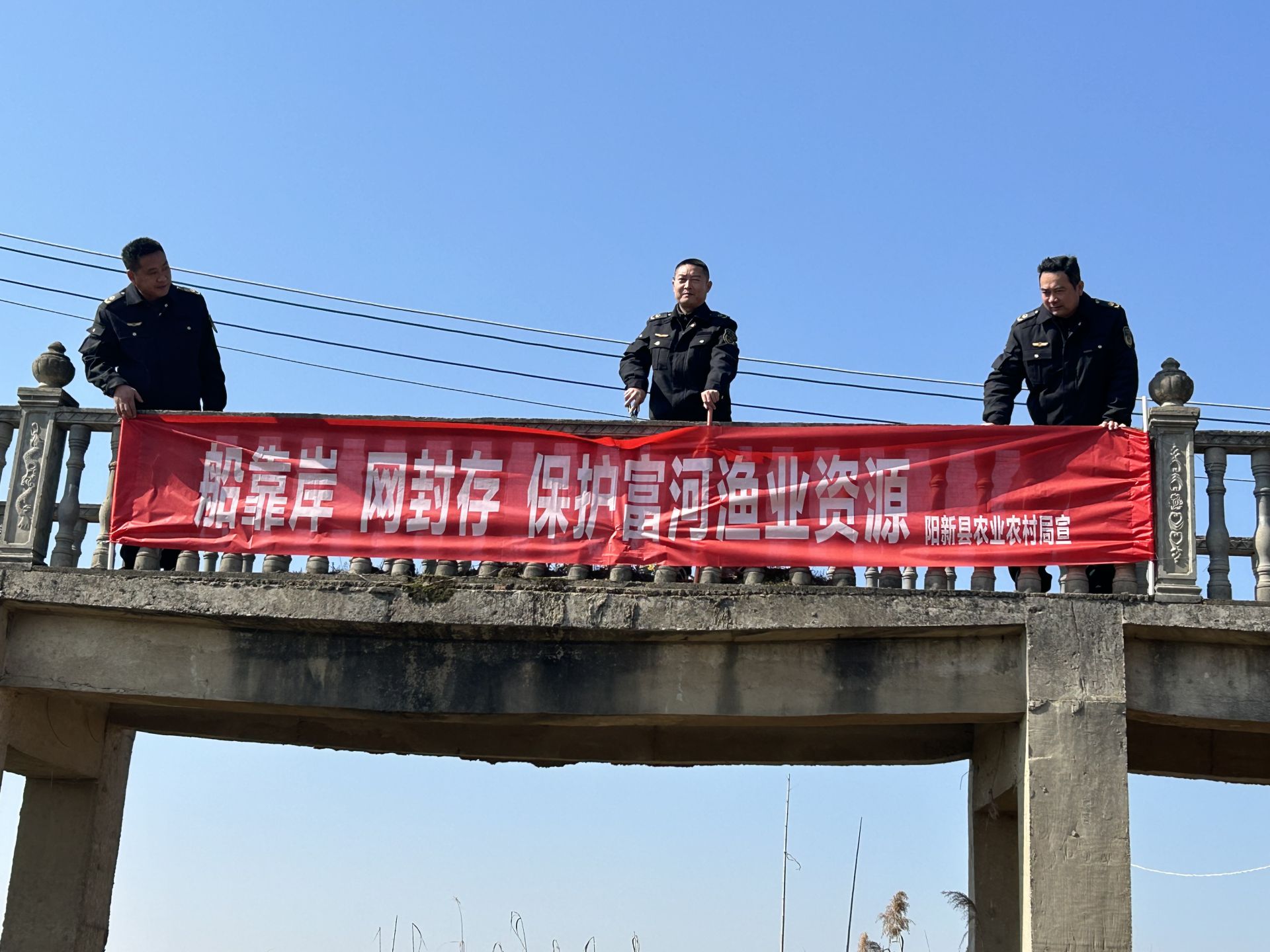 与此同时,渔政执法人员在富河沿岸显要位置、渔村、码头张贴禁渔通告400余份、悬挂禁渔宣传横幅30余条。禁渔期开始,县农业综合执法大队对禁渔区实行实时监控,渔政执法人员将实行不间断巡逻值班。