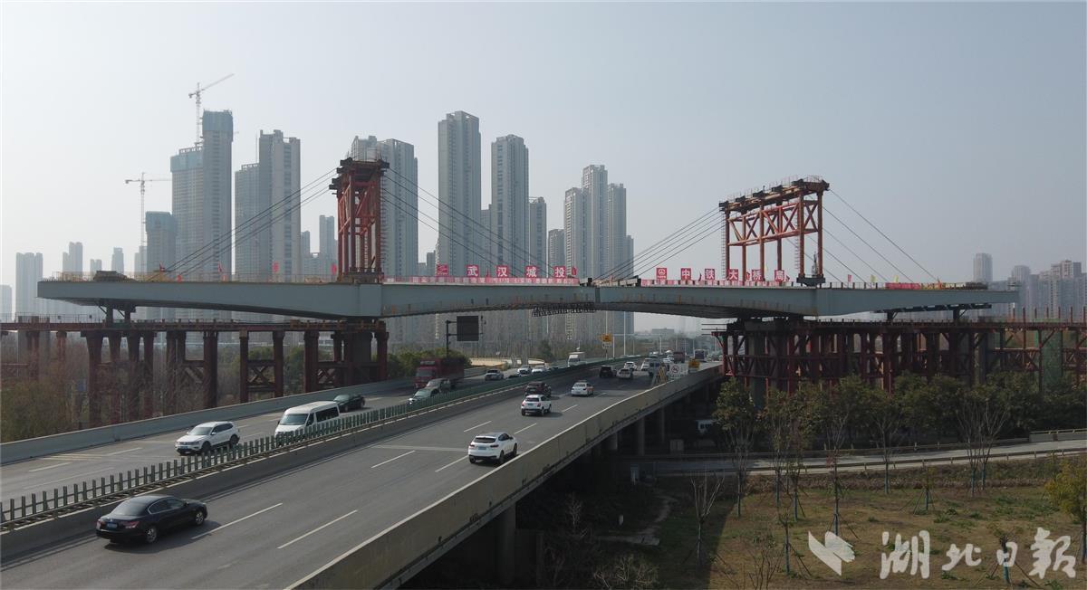 湖北日报讯(记者胡祎、通讯员余娅娟、刘峰)3月4日凌晨5时,经过连续五天夜间施工,在千斤顶推动下,三环线青菱立交南北两侧长69米、重近800吨的钢梁“行走”56米后实现“握手”,标志着白沙洲大道高架成功跨越三环线,即将与青菱高架接通,实现武汉南向出城通道全程高架,直达青郑高速。目前,工程建设进入高潮,冲刺年底贯通。
