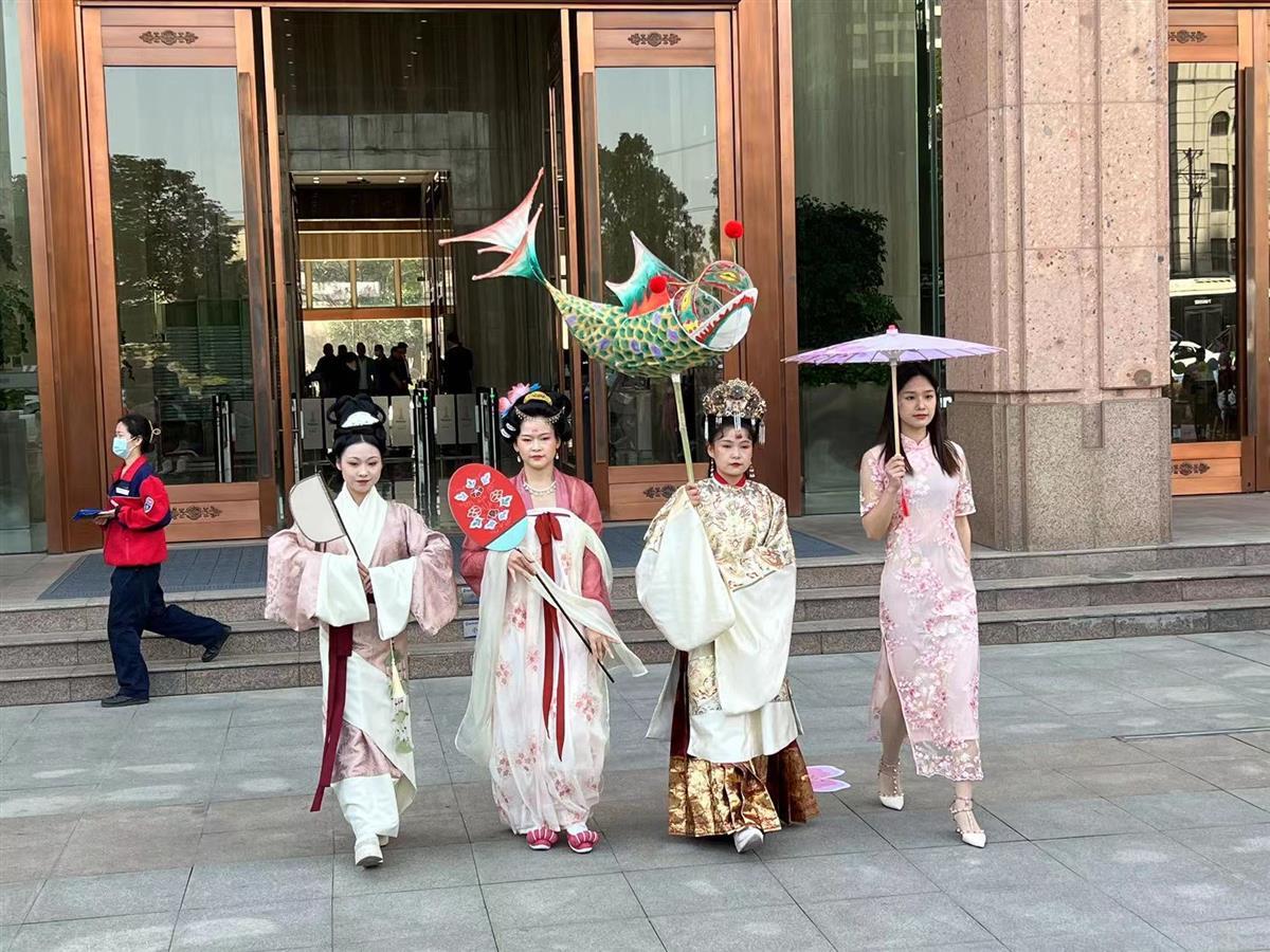 此外,现场还有黄鹤楼、汉秀、起义门等武昌标志性建筑模型,吸引居民们打卡拍照,强化对传统文化的认知,增强居民对武昌古城文化的自信和认同感。