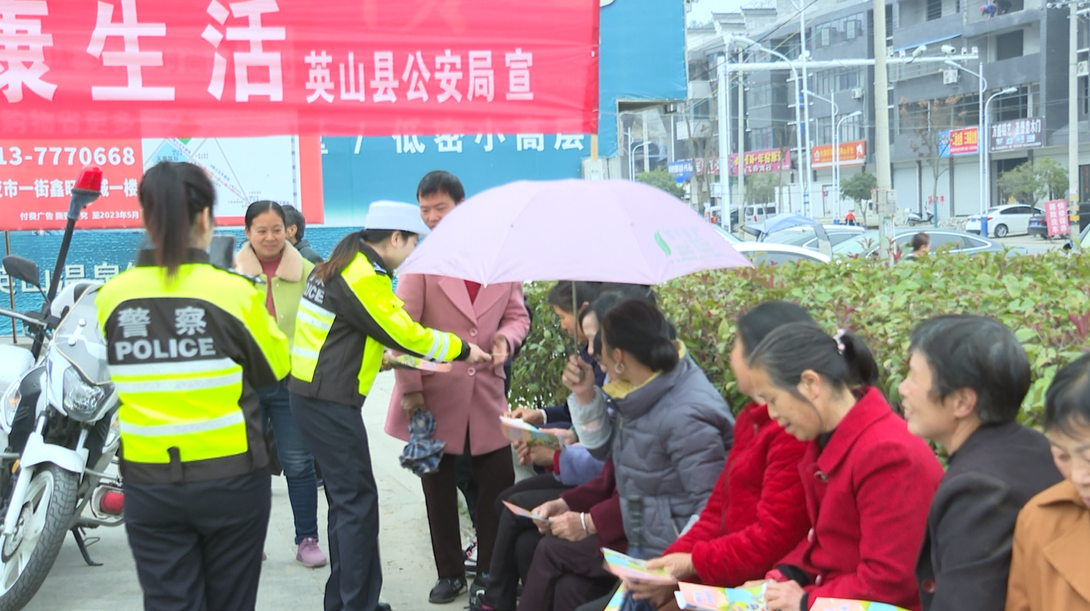 3月8日,英山县公安局庆“三八”妇女节警民互动宣传日暨秀峰社区创建“无诈无毒零酒驾”社区启动仪式在茶香小镇举行,英山副县长、县公安局局长李向阳参加活动。