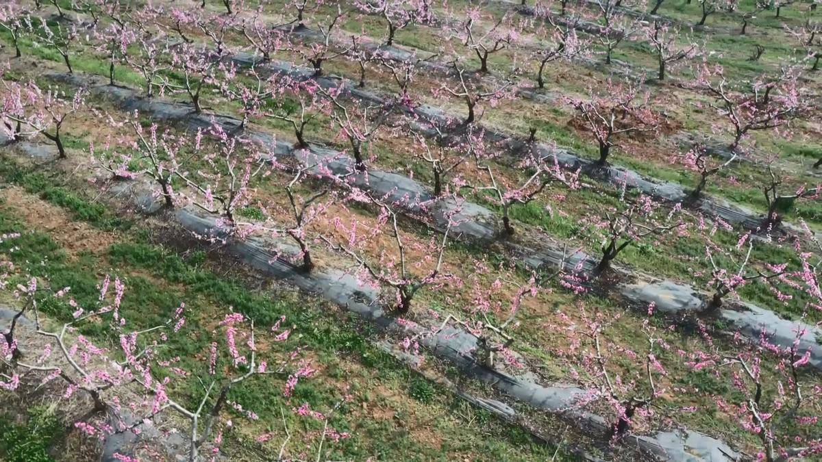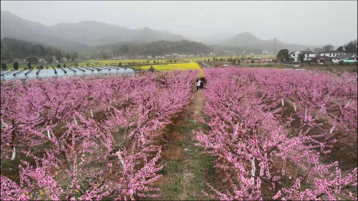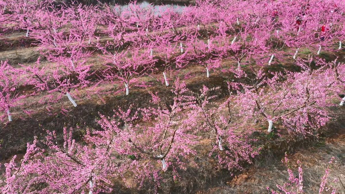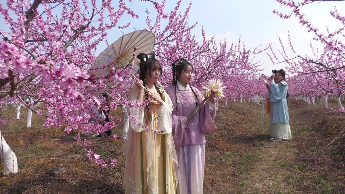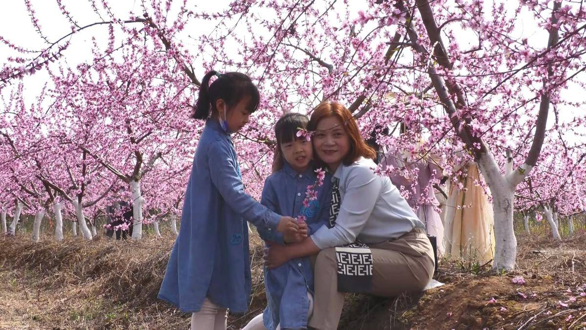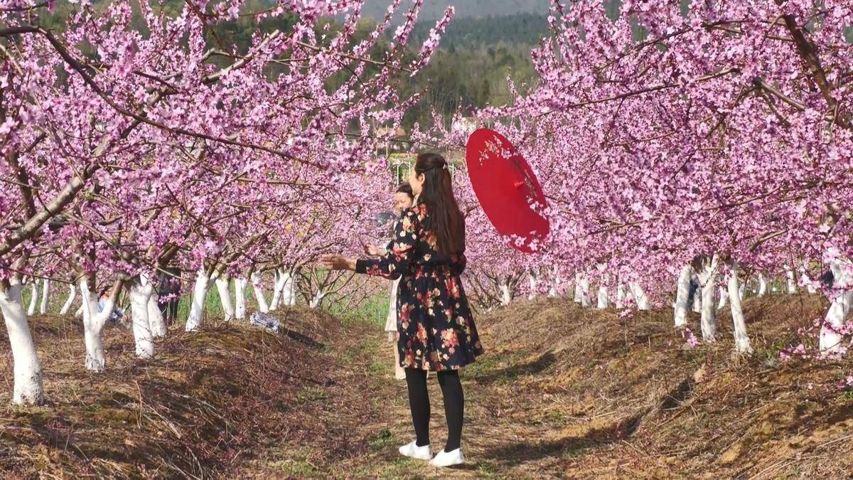 景区内百亩桃花绚丽绽放,缀满枝头,四面八方的游客慕名而来,走进桃林,浸染花香,三三两两的赏花踏春者穿行其间,互相打卡拍照,尽情地享受着这浓浓春意。