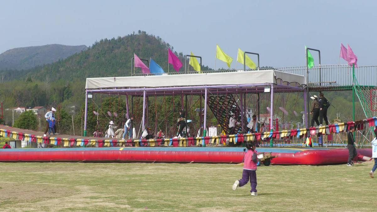 除了赏花,亲子出行也成为一道亮丽风景,摇摆桥、蹦蹦床、滑滑梯......不少家长带着孩子来到景区享受田野踏青的乐趣,儿童乐园内充满欢声笑语。
