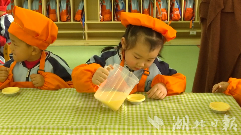 湖北日报客户端讯(通讯员晏益鹏 吴娇梅)3月14日,汉川市实验幼儿园“食育小课堂”正式开课,萌娃们化身“小厨师”,在食育课堂上学做蛋挞,体验烹饪的乐趣。