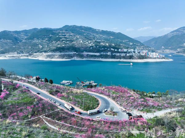 湖北日报客户端讯(通讯员 曾垂伦 刘磊)3月15日,在巴东县信陵镇黄土坡,数万株桃树花开正艳,粉色花海与碧绿长江水构成一幅春日美景图,吸引不少居民来此踏青打卡。