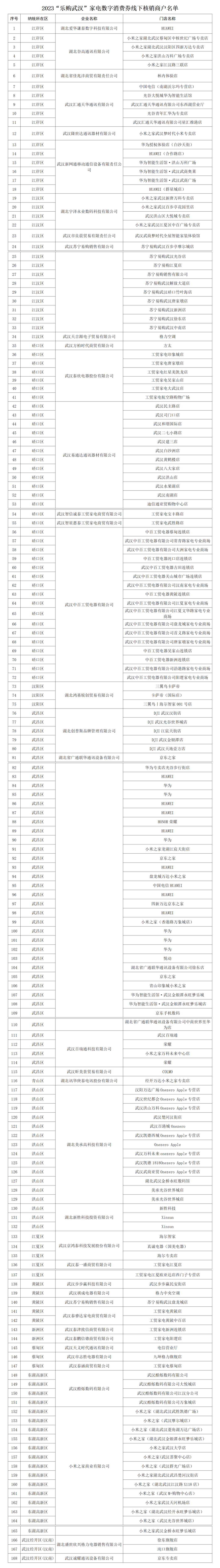 4月7日,武汉市商务局发布了《关于2023“乐购武汉”家电数字消费券线下核销商户的公示》:
