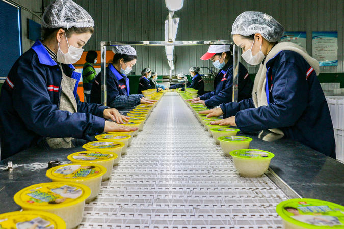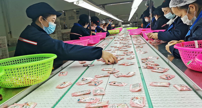 爽露爽工人在包装产品。(湖北日报全媒记者 方桐 通讯员 万阳 摄)