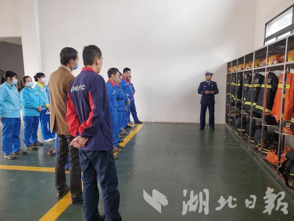 湖北日报客户端讯(通讯员 刘爱理、刘宇航)4月11日上午,十堰经开区消防组织中石化白浪油库部分员工走进消防站参观学习,切实推进安全生产“春季攻势”专项行动,努力营造浓厚的消防安全氛围,牢铸易燃易爆场所消防安全防线。