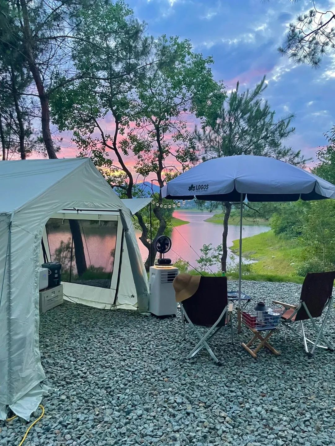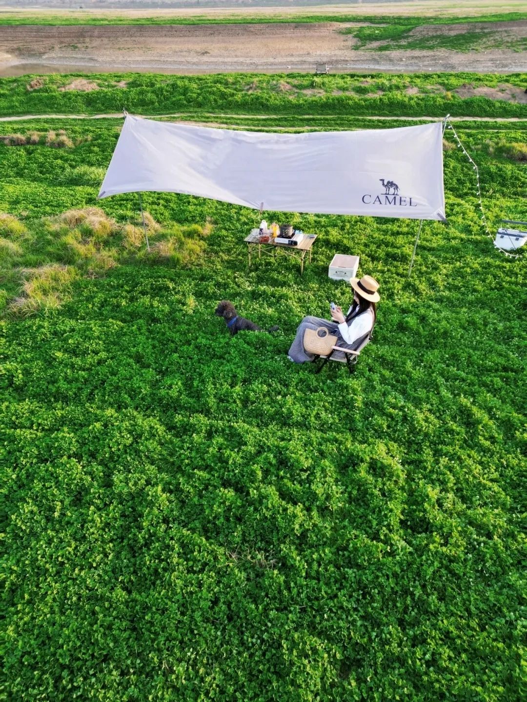 木兰花乡露营地5万方大草坪采用高尔夫专用草皮,既可自带帐篷,也可现场租敞篷,场地完全免费。露营基地淋浴房、卫生间一应俱全,扫码即可使用,可以过夜睡在风景里。