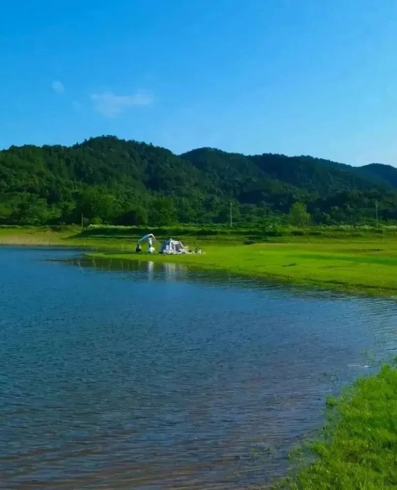 月亮湖位于木兰山与木兰天池腹地,月亮湖如同仙女遗落在人间的泪滴,碧波盈盈。距离武汉市内仅1h车程,人少、临湖、有山、有野趣。大片的草坪,满眼新绿,蓝天白云湖水环绕,自然氛围感拉满。导航闵家大湾即可到达。
