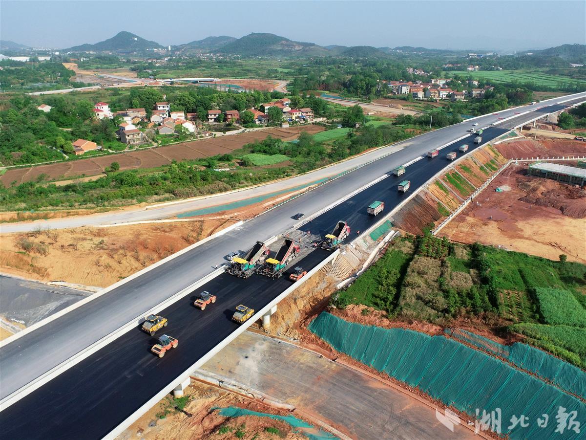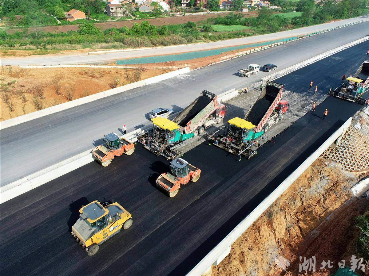 湖北日报讯(通讯员王鹏)穿山越岭,长虹飞架,车辆穿梭,设备轰鸣。走进中国能建葛洲坝路桥公司承建的武阳高速建设现场,前方摊铺、后方碾压,一体化摊铺施工集群实现沥青面层一次性成型,一派热火朝天的施工景象。