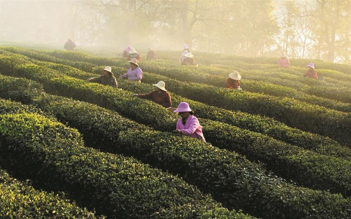 该镇柏园村茶叶公园,层层叠叠的茶树,形成一道道绿色的纹理。茶农和采茶工穿行其间,制茶车间里茶香四溢,空气里仿佛都弥漫着茶叶的香气。