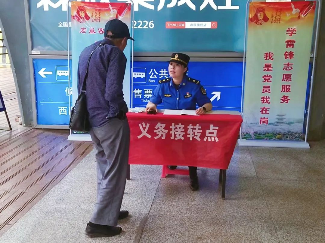 同时,在西出站口的志愿服务岗亭设“宏基客运站义务接驳专线”,安排站区办党员专门为老弱病残孕等弱势群体和退役军人、消防救援人员等优待群体提供行李搬运和点对点运送至宏基客运站的服务。
