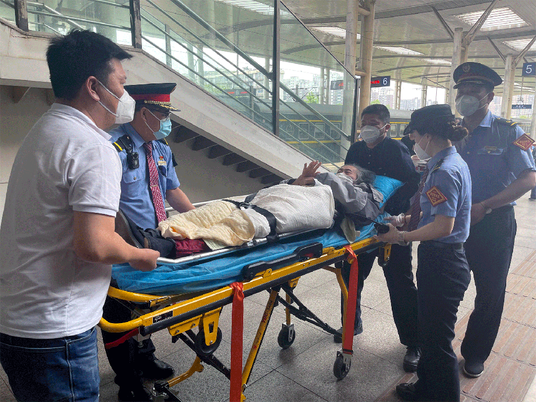 乘车当日,服务台提前联系王先生准备担架,并开通进站绿色通道,由专人引导进站上车,与列车长办理重点旅客服务的交接。