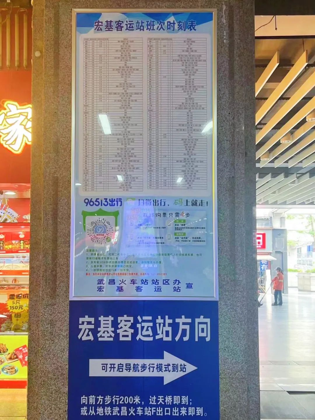 为了给旅客营造便捷、有序、温馨的出行环境,武昌站区办在武昌火车站西出站口的醒目位置展示了宏基客运站的发车时刻表,方便旅客出站灵活选择乘车时间中转换乘。
