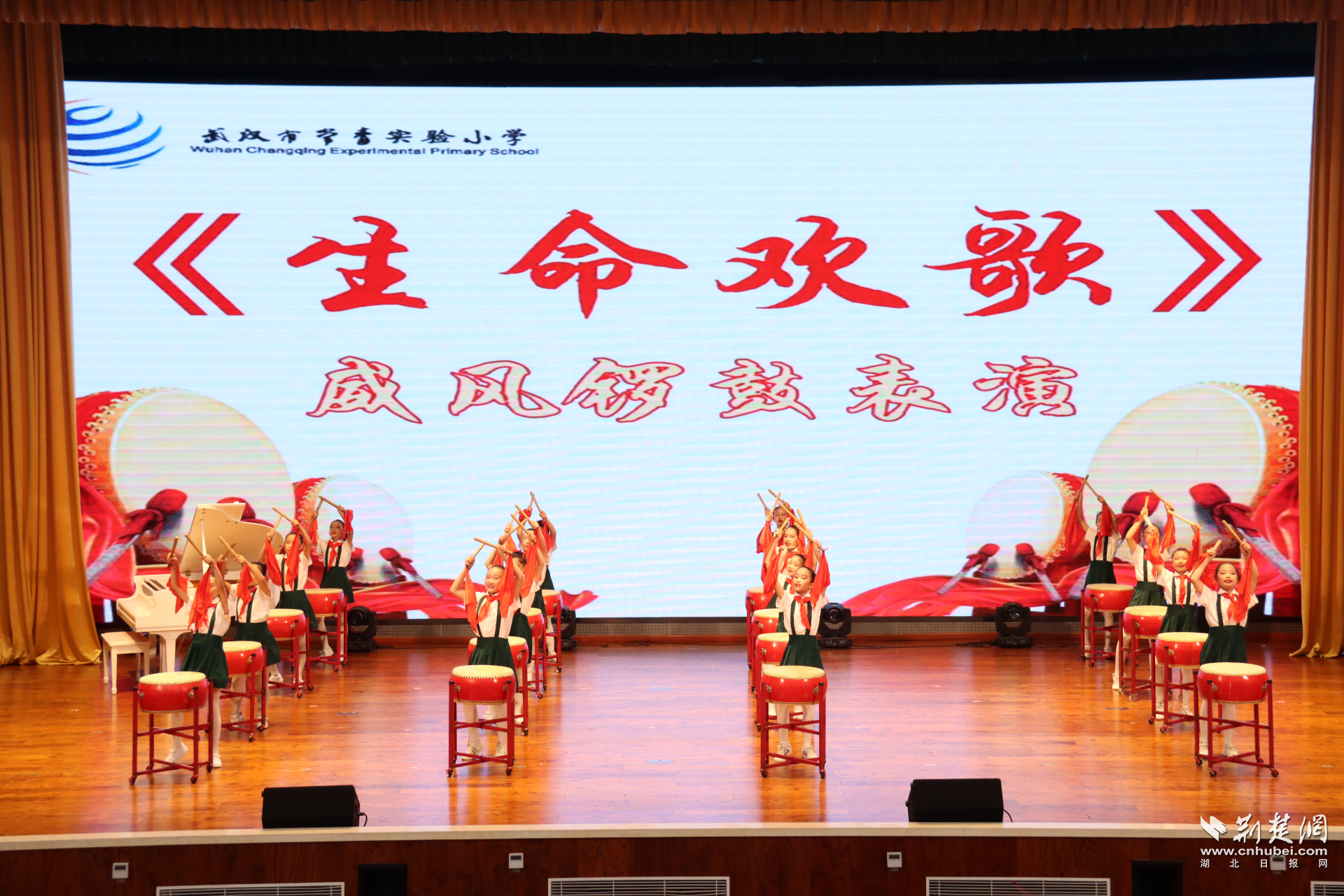 武汉市常青树实验小学《生命欢歌》威风锣鼓表演。记者 许文秀 摄