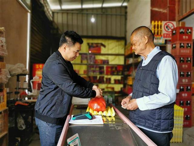 养老金银行卡在上面一刷,输入要取的金额,老人就可以从小卖部老板那里领到自己的居保养老金。