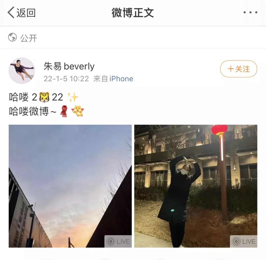 现在的朱易,在北京做着冬奥会前的准备训练,1月5日她还通过微博向支持她的网友们打招呼,熟练的表情包运用,就像一个普通的孩子,活泼阳光、积极向上。